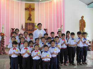 em lãnh Bí tích, có Thầy xứ, Quí Dì, các em thiếu nhi và cộng đoàn.